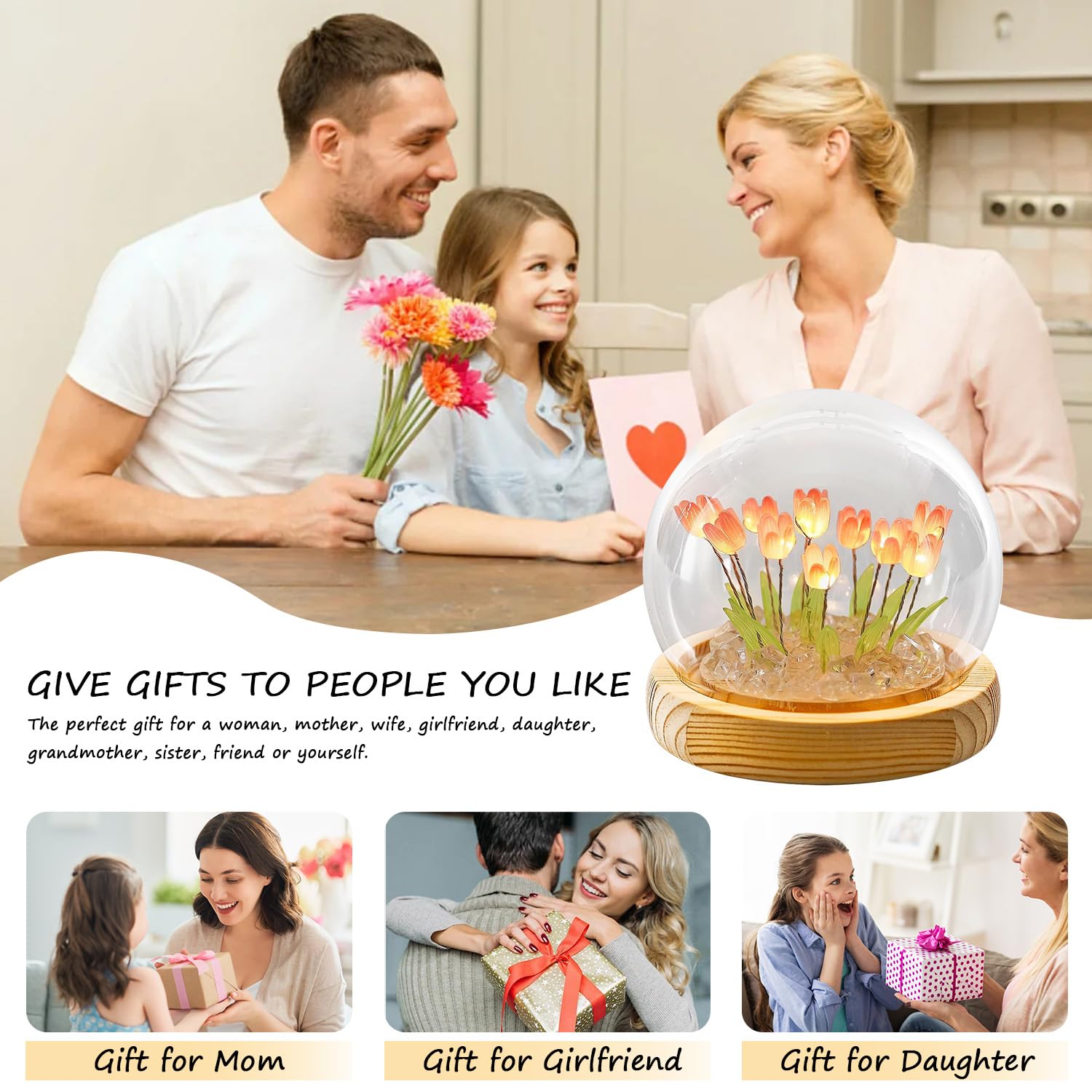 🌷 Tulip Flower LED Lamp – Elegant Glass Dome Night Light